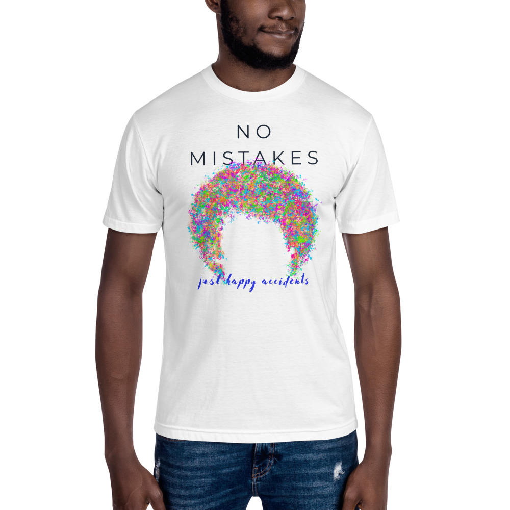 Rock this famous quote from a huge idol of mine and fellow Dreamer, Bob Ross! Always smiling under that wild head of hair, he reminds us that any “mistake” is just an opportunity to make a more beautiful picture. This shirt will give you the opportunity to have Bob’s ‘fro whenever you want!